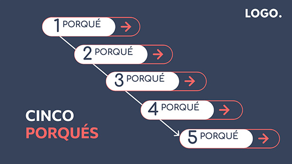 Preguntando «por qué» cinco veces y contestando cada pregunta, podemos llegar a, la causa real del problema, que a menudo se esconde detrás de síntomas más obvios.